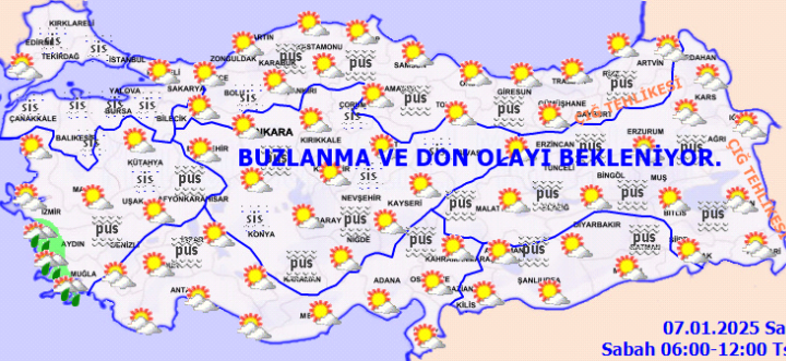 Meteoroloji 7 Ocak Salı gününe ilişkin hava tahmin raporuna göre sabah ve gece saatlerinde iç ve doğu...