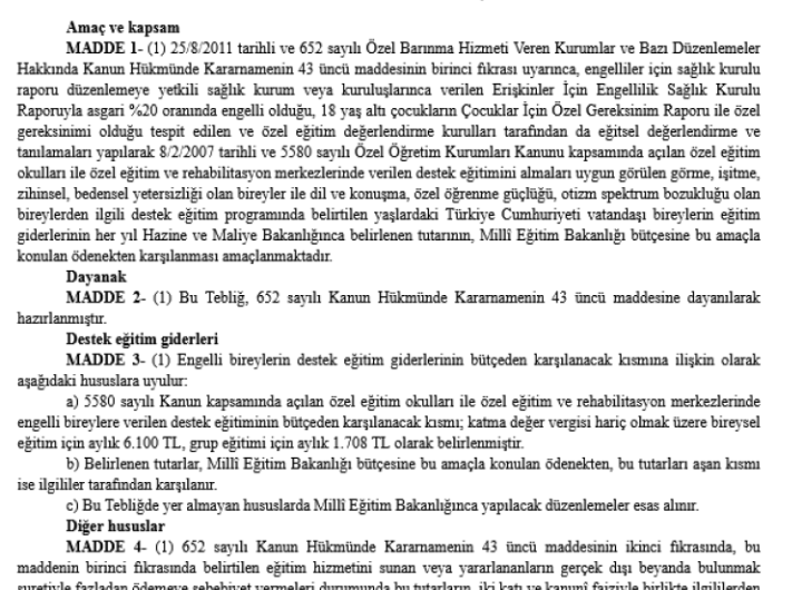 2025 Yılı Özel Eğitime İhtiyaç Duyan Bireylere Verilecek Eğitim Desteği Tutarlarına İlişkin aylık rakamlar belirlendi. 1 Ocak...