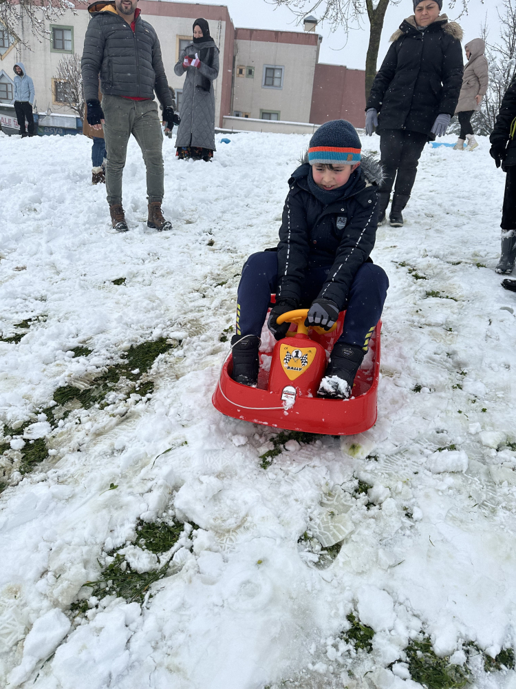 Bunu fırsat bilen çocuklar Bahçeşehir’de bulunan boşluk alanda kayıp eğlendiler. Heryıl bu alanda toplanıp kayak yapan çocuklar aileleriyle birlikte hem kayıp hemde kartopu oynadılar.