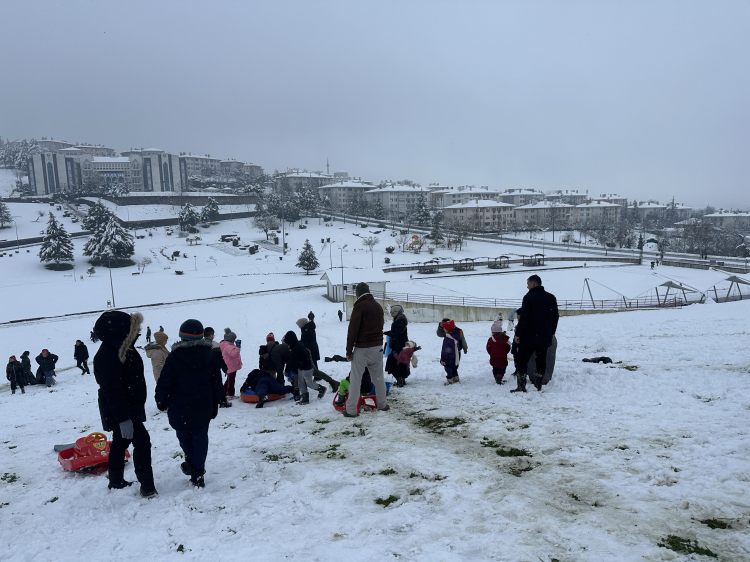 Bunu fırsat bilen çocuklar Bahçeşehir’de bulunan boşluk alanda kayıp eğlendiler. Heryıl bu alanda toplanıp kayak yapan çocuklar aileleriyle birlikte hem kayıp hemde kartopu oynadılar.