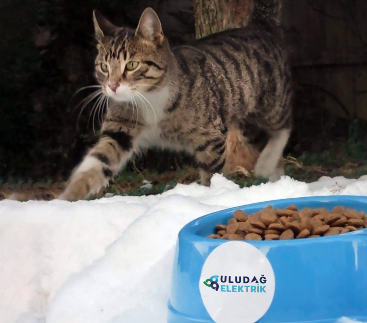 Uludağ Elektrik, kış aylarında etkisini iyice hissettiren soğuk havalar nedeniyle yiyecek bulmakta zorlanan sokak hayvanlarını mamasız ve susuz bırakmıyor.