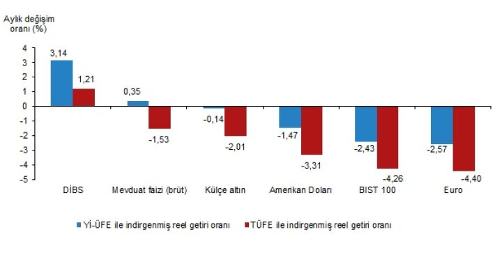 Finansal yatırım araçlarının reel getirilerinde bu kez aylık en yüksek reel getiri Devlet İç Borçlanma Senetleri (DİBS)’nde...