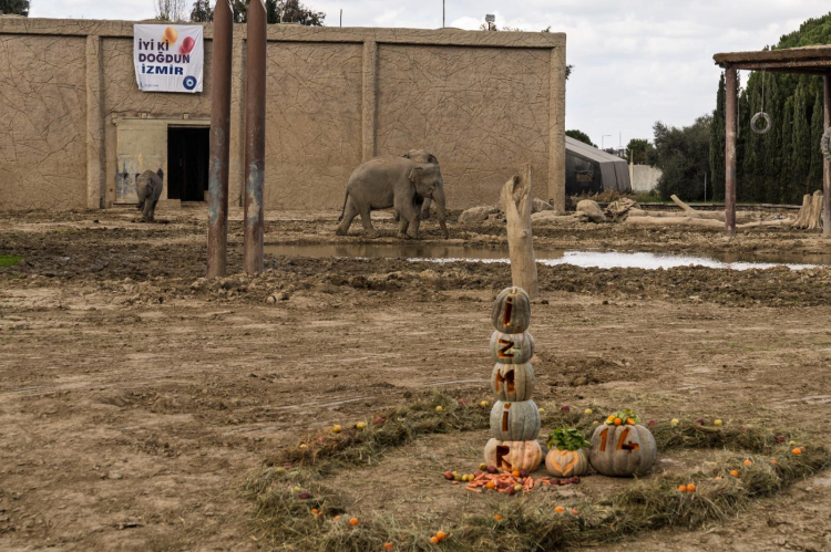 İzmir Doğal Yaşam Parkı, bir kez daha heyecan dolu anlara tanıklık etti. Türkiye’de dünyaya gelen ilk fil olan ve adı da yapılan anket sonucu yurttaşların oyları ile belirlenen fil İzmir 14. yaş gününü kutladı. Bu özel günde İzmir, kendisi için bal kabağı ve meyvelerle hazırlanan pastayı yedi.