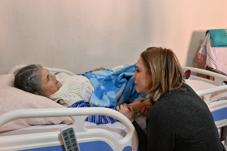 Manisa Büyükşehir Belediye Başkanı Mimar Ferdi Zeyrek’in eşi Nurcan Zeyrek, evde bakım hizmetinden yararlanan 74 yaşında Ramize Çakar’ı evinde ziyaret etti.