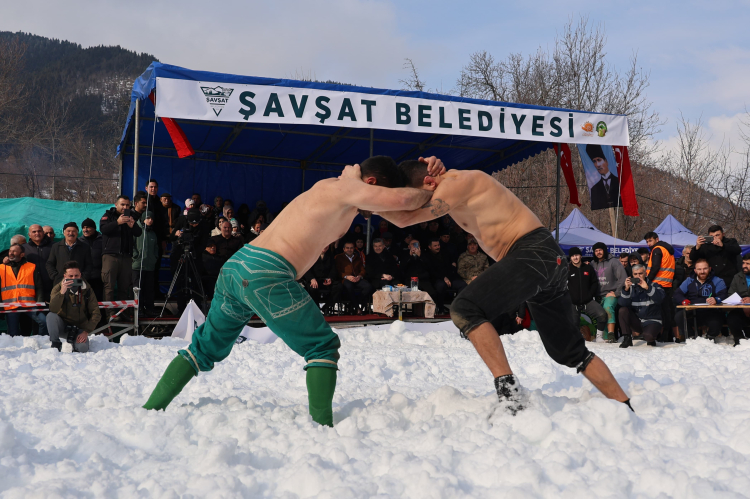 Artvin’in Şavşat ilçesine bağlı Veliköy’de bu yıl 28’incisi düzenlenen “Kar Üstü Karakucak Güreşleri” yapıldı.