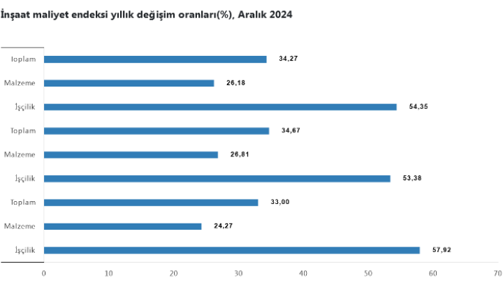 İnşaat maliyet endeksi yıllık yüzde 34,27, aylık ise yüzde 0,70 arttı. Maliyetlerde en yüksek değişim her zaman...