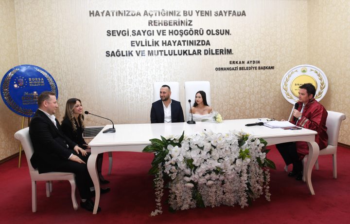 Bursa’da Osmangazi Belediye Başkanı Erkan Aydın, 14 Şubat Sevgililer Günü’nde nikah kıydıracak çifte sürpriz yaparak nikahlarını kıydı....