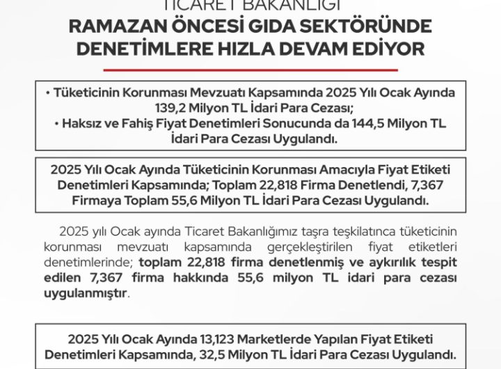 Ramazan öncesi gıda sektöründe denetimlere hız veren Ticaret Bakanlığı, yılın ilk ayında tüketicinin korunması ile haksız fahiş...