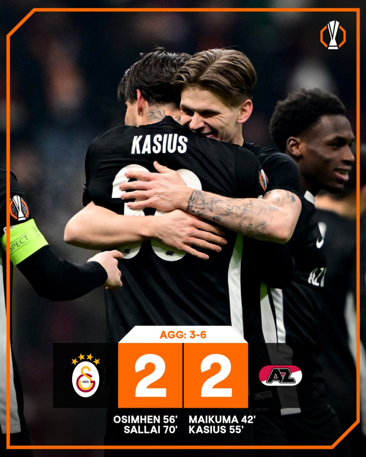 Galatasaray, UEFA Avrupa Ligi son 16 play-off turunda 4-1 kaybettiği ilk maçın rövanşında AZ Alkmaar ile 2-2 berabere kalarak organizasyona veda etti.