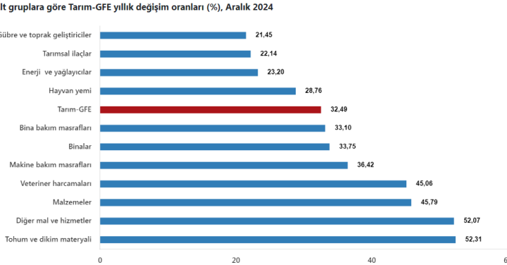 TÜİK’in açıkladığı Aralık ayı verilerine göre Tarım-GFE 12 aylık dönemde yüzde 40,94 artış gösterdi. Yıllık değişimde en...