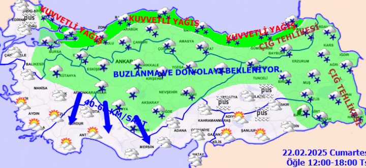 Meteoroloji’ye göre ülke genelinde kar ve karla karışık yağmur bekleniyor. Marmara’nın doğusu, Karadeniz kıyıları ve Kırklareli’nde kuvvetli...
