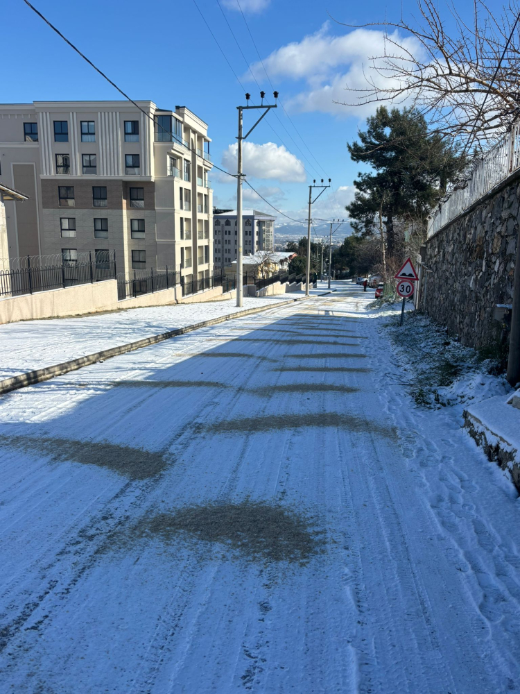 İlçe merkezinde özellikle Beşevler, Üçevler, Konak gibi mahallelerde sıcaklığın eksilere düşmesi nedeniyle buzlanan yollarda olası kazaların önüne geçmek için ekipler sabahın erken saatlerinden itibaren yoğun bir şekilde tuzlama çalışması yaptı. Yolların ulaşıma açık kalması için hummalı bir şekilde çalışan ekipler, 9 tuzlama ve 13 yol açma aracı ile karla mücadele ediyor.