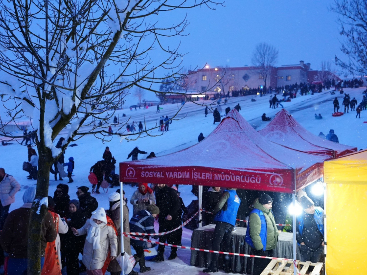 Düzce Belediyesi Sosyal Yardım İşleri Müdürlüğü ekipleri standlar kurarak, kayak yapan vatandaşlara sıcak salep, çay, çikolata ve helva ikramında bulundu.