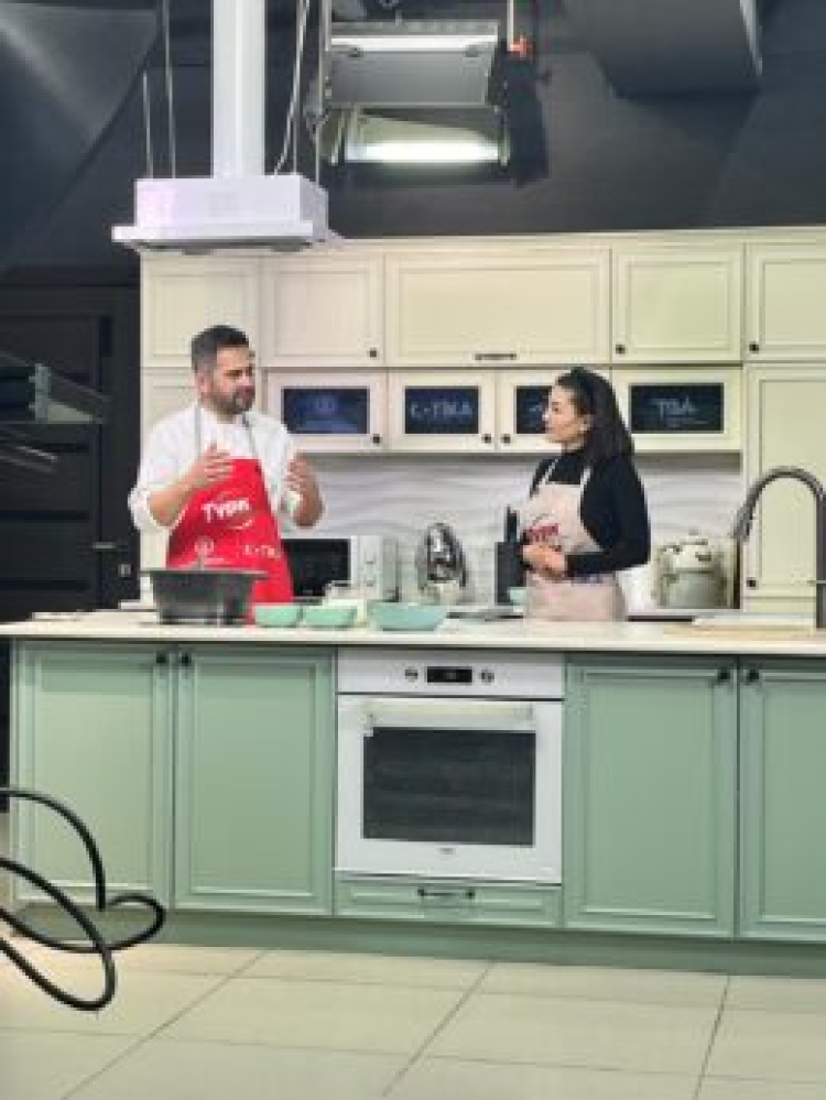 Kırgızistan’ın ulusal bir televizyon programına katılım sağlanarak Ata Topraklarından Anadolu’ya Türk Mutfağı projemizin tanıtımı yapıldı. Ortak mutfak kültürümüz hakkında söyleşi yapılarak yemek programı çekimi gerçekleştirildi.