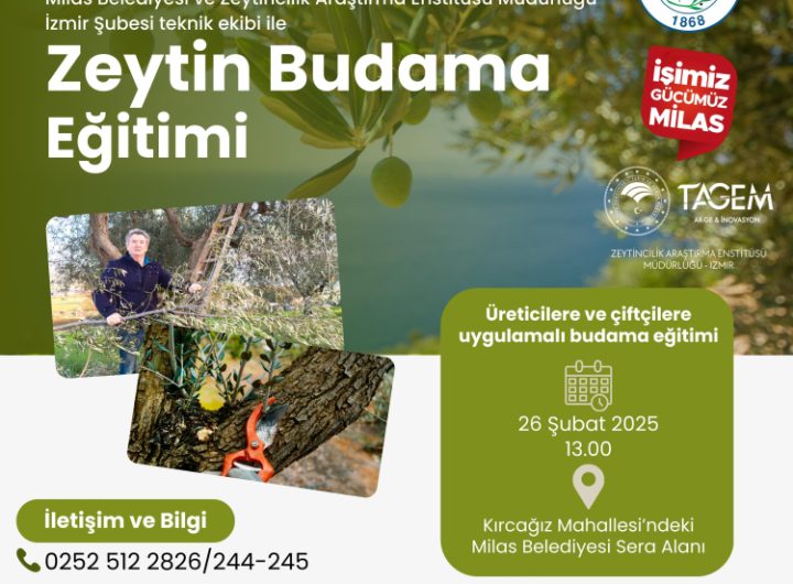 Muğla Milas Belediyesi ve Zeytincilik Araştırma Enstitüsü Bornova-İzmir Şubesi’nin teknik personelleri tarafından çiftçilere uygulamalı zeytin budama eğitimi...