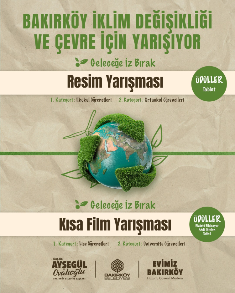 İstanbul Bakırköy Belediyesi, Dünya Çevre Günü etkinlikleri kapsamında ilçe genelindeki ilkokul ve ortaokul öğrencilerine resim, lise ve üniversite öğrencilerine kısa film yarışması düzenliyor. “Geleceğe İz Bırak” temalı yarışmaların sonucunda başarı elde eden öğrencilere ödül verilecek.