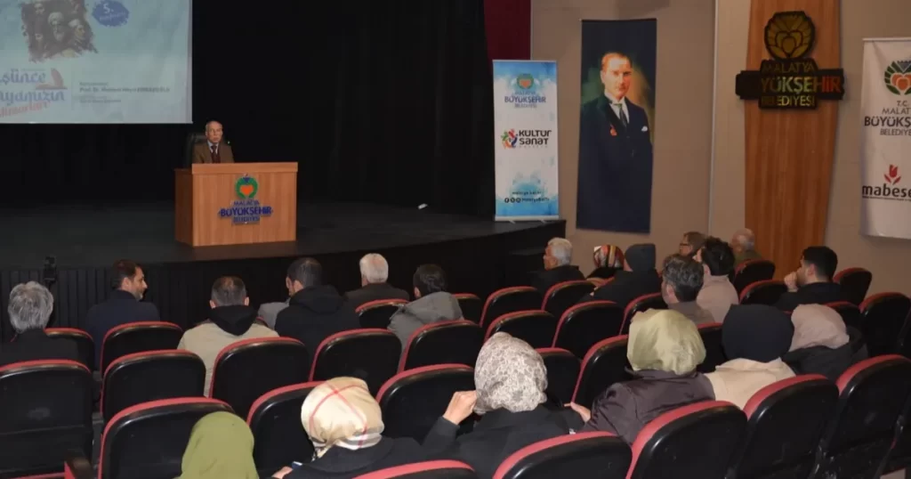 MALATYA (İGFA) – Malatya Büyükşehir Belediyesi Kültür ve Sosyal İşler Dairesi tarafından Sanat Merkezi Salonunda düzenlenen “Düşünce Dünyamızın Mimarları” Konulu program dizisi, 5’nci konferansla devam etti. Konferansı, emekli Öğretim Üyesi Prof. Dr. Mehmet Hayri Kırbaşoğlu verdi. Tam adı Ebu Abdullah Muhammed B. İdrîs eş-Şâfi olan İmam Şafii’yi anlatan Kırbaşoğlu, büyük alim İmam Şafii’nin hayatı, eğitimi, kişisel özelliklerini; fıkıh alanındaki katkılarını, İslam düşünce dünyasına etkilerini ve ilmi mirasını detaylı olarak aktardı.