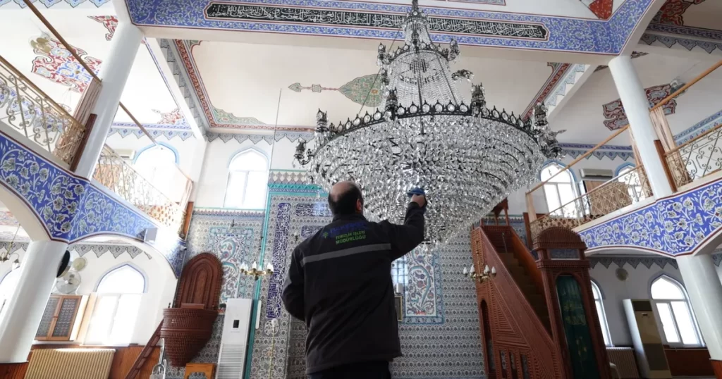 İSTANBUL (İGFA) – Ramazan ayı öncesinde Bakırköy genelinde bulunan camilerde geniş kapsamlı temizlik çalışması yapıldı. Vatandaşların ibadetlerini daha hijyenik, sağlıklı ve ferah bir ortamda gerçekleştirebilmeleri için çalışmalarını yoğunlaştıran Bakırköy Belediyesi Temizlik İşleri Müdürlüğü ekipleri, camilerde bulunan halıları gül suyu ile titizlikle yıkayıp süpürürken; şadırvan, tuvalet, pencere, ayakkabılık, kapı, mihrap, kürsü, minberi ve avluları dip köşe temizledi. Ekipler, binlerce kişinin manevi bir iklimde buluştuğu camileri ramazan boyunca düzenli bir şekilde temizlemeye devam edecek.