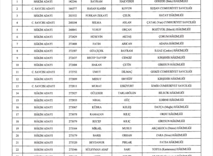 Hakimler ve Savcılar Kurulu tarafından 30 Ocak’ta Cumhurbaşkanlığı Külliyesi’nde gerçekleştirilen törende yapılan ad çekme sonucuna göre belirlenen...