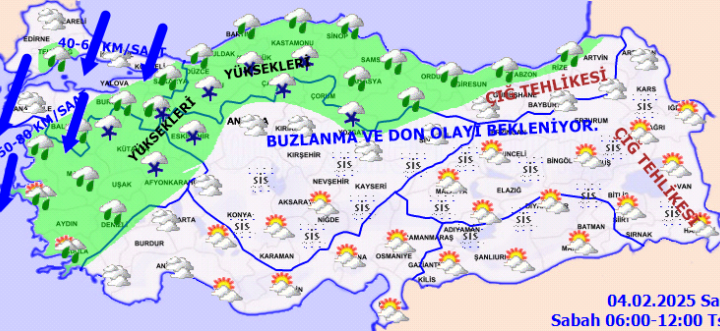 Hava sıcaklığının kuvvetli kuzeyli rüzgar ve ani sıcaklık düşüşü ile birlikte özellikle kuzeybatı kesimlerde hissedilir derecede olmak...