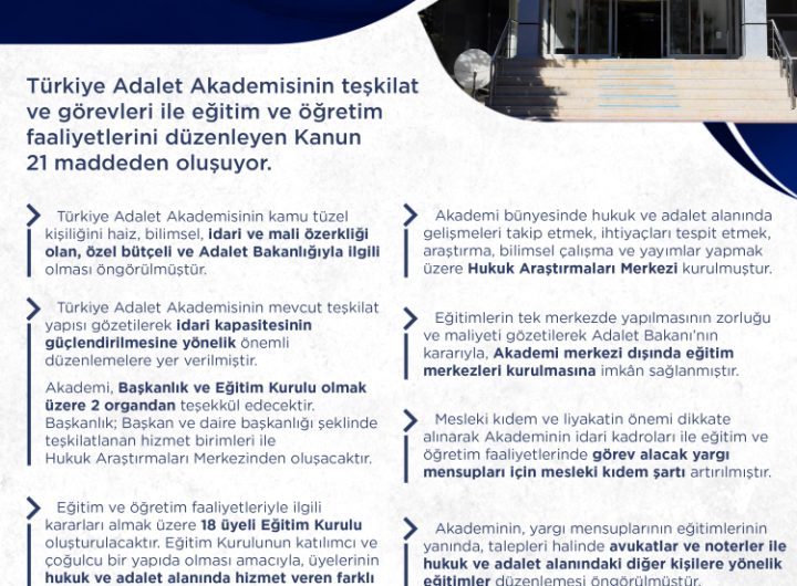 ANKARA (İGFA) – TBMM Genel Kurulu’nda 13 Şubat’ta kabul edilerek yasalaşan Türkiye Adalet Akademisi Kanunu bugünkü Resmi...