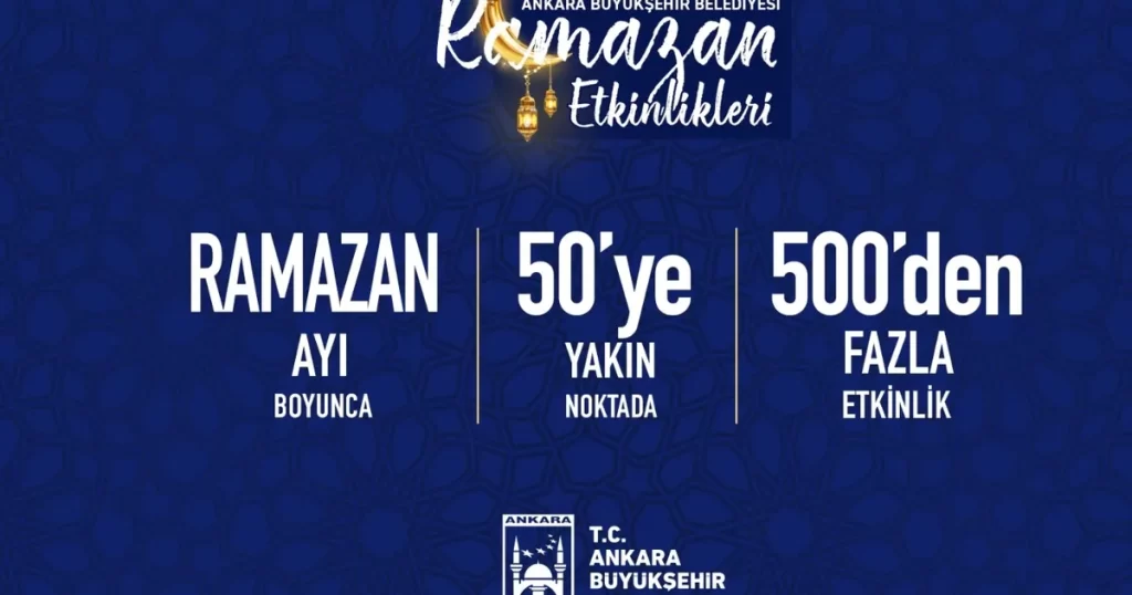 ANKARA (İGFA) – Ankara Büyükşehir Belediyesi (ABB), ramazan ayının manevi atmosferini Başkentlilerle birlikte dolu dolu yaşamak için kapsamlı bir etkinlik programı hazırladı. Geleneksel değerleri yaşatmak, paylaşma ve dayanışma duygusunu pekiştirmek amacıyla düzenlenecek etkinlikler, Ramazan coşkusunu Başkentin dört bir yanına taşıyacak.