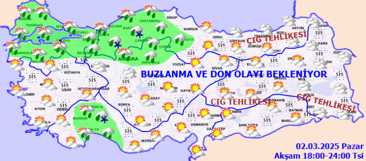 Sıcaklıkların, Orta ve Doğu Karadeniz’in iç kesimleri ile İç Anadolu’da mevsim normallerinin 2 ila 4 derece üstünde, diğer yerlerde önemli bir değişiklik beklenmezken, çığ tehlikesi ile buzlanma ve don olaylarına ilişkin önemli uyarı geldi.