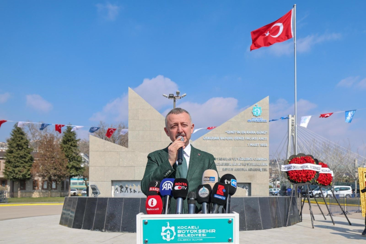 “Günün şartlarında Üsküdar Vapuru, bugün sahilde gördüğümüz vapurlar gibi de değildi. Facianın yaşanmasındaki en büyük neden, kaptan köşkünün lodosla birlikte uçması gösterilir. Aşırı yolcu almış bu küçük tekne, kaptan köşkünün de uçmasıyla bu facia yaşandı. Ziyaret ettiğimiz yabancı ülkelerde, şehirlerin hatırlarını anıtla, simgeyle, yazıyla yaşattığını görürüz. Bu anıtın da bu anlamda şehrimiz için en büyük acılardan biri olan 1 Mart Üsküdar Vapuru faciasını bizlere hep hatırlatmasını diliyorum. Bu kazadan alınacak hala dersler var. Hayatını kaybeden vatandaşlarımızın anıları var. Bu anıtın bunları da yaşatmasını umuyorum. Onları bir kez daha rahmetle anıyoruz”. Başkan Büyükakın, anıtın yapılmasında emekleri olan İzmit Lisesi Mezunları Dernek Başkanı Haluk Cem Gökmen, İzmit Sanat Okulu Mezunları Dernek Başkanı Yusuf Altınay ve İzmit Kent Konseyi Başkanı Hüseyin Erol’a da teşekkür etti. Törenin ardından her yıl olduğu gibi faciada hayatını kaybedenlerin anısına denize çelenk bırakıldı.