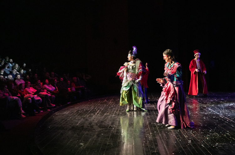 Usta yazar Aziz Nesin’in “Karagöz” metinlerinden hareketle İzBBŞT Genel Sanat Yönetmeni Yardımcısı Harun Özer’in geleneksel orta oyunu formunda sahneye uyarladığı Demokrasi Gemisi, seyirciden tam not aldı. Günümüz Türkiye’sinde yaşanan aksaklıkları mizahi bir dille hicveden oyunda, sanatçıların performansı sık sık alkışlarla kesildi.