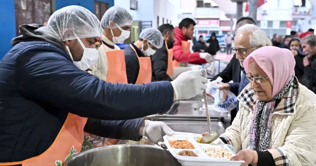 ANTALYA (İGFA) – Antalya Muratpaşa Belediyesi’nin Ramazan ayına özel geleneksel iftar programları binlerce kişiyi aynı sofrada buluşturmaya devam ediyor. Dayanışmanın, paylaşmanın ve bereketin simgesi haline gelen iftar sofralarının ikinci adresi Varlık Mahallesi kapalı pazar yeri oldu. Bahçelievler, Altındağ, Varlık ve Deniz mahallelerinden gelen 2 binden fazla ilçe sakini, dualar eşliğinde oruçlarını açtı.