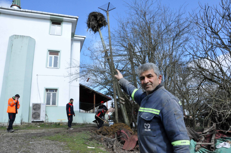 Rüzgârın etkisiyle yan yatan direk, yerinden sökülüp sağlam bir şekilde yeniden monte edildi. Ayrıca direğin üzerine kurulu olan leylek yuvası da dikkatle yerinden alındı. Eski yuvadaki dal parçaları temizlenerek, yeni yuva özenle yerine yerleştirildi. Onarım ve temizlik çalışmalarının ardından leylek yuvası yeniden kullanıma sunuldu. Yuvasına konan leylekler, yaşam alanlarına yerleşti.