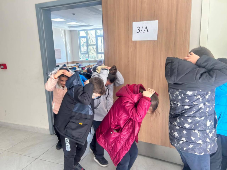 Eğitimin ardından, öğrencilerle deprem tatbikatı yapıldı. Tatbikat sırasında öğrenciler, deprem anında sınıflarında nasıl hareket etmeleri gerektiğini ve güvenli tahliye sürecini uygulamalı olarak öğrendi.