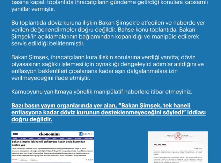 ANKARA (İGFA) – Bazı basın yayın organlarında yer alan, “Bakan Şimşek, tek haneli enflasyona kadar döviz kurunun...