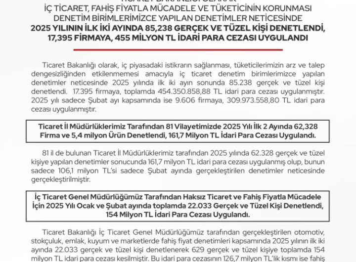 ANKARA (İGFA) – Ticaret Bakanlığı’ndan yapılan yazılı açıklamada, iç piyasadaki istikrarın sağlanması, tüketicilerin arz ve talep dengesizliğinden...
