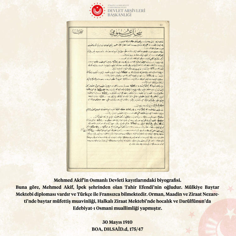 “Vatan Şairi” ve “Millî Şair” unvanları ile anılan Mehmet Akif Ersoy, 20 Aralık 1873 tarihinde İstanbul’un Fatih ilçesinin Karagümrük semti Sarıgüzel Mahallesi’nde dünyaya gelmiştir.