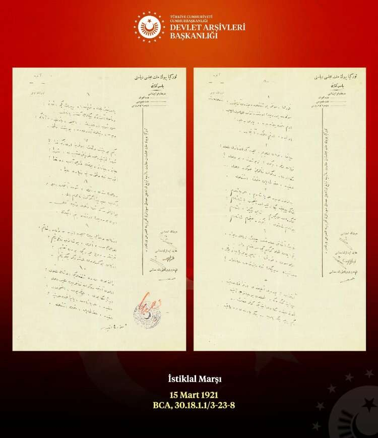 Milli birlik ve beraberliğin yanı sıra bağımsızlığımızı anlatan İstiklal Marşı, Anadolu’da Millî Mücadele’nin devam ettiği sırada Mehmet Akif Ersoy tarafından kaleme alınmış ve 12 Mart 1921’de Birinci Türkiye Büyük Millet Meclisi tarafından milli marş olarak kabul edilmiştir. Bestesi Osman Zeki Üngör’e aittir. Orkestrasyonu Edgar Manas tarafından yapılmıştır.