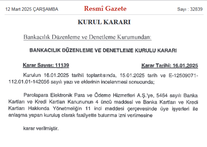 ANKARA (İGFA) – Bankacılık Düzenleme ve Denetleme Kurulu, Parolapara Elektronik Para ve Ödeme Hizmetleri AŞ’ye faaliyette bulunma...