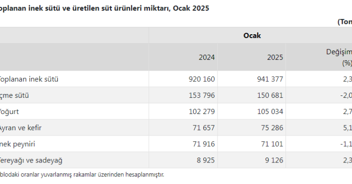 ANKARA (İGFA) – TÜİK, Süt ve Süt Ürünleri Üretiminde Ocak ayına ilişkin istatistikleri açıkladı. Ocak ayında ticari...