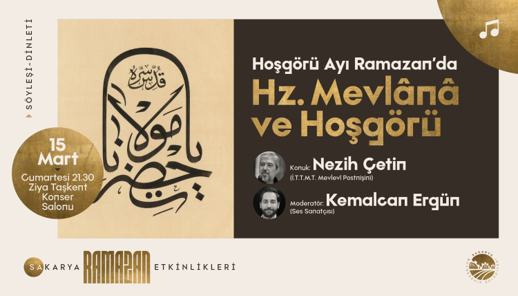 Nezih Çetin’in Mevlânâ’nın evrensel hoşgörü anlayışı ve insan sevgisi üzerine derinlemesine bir sohbet gerçekleştireceği programda ses sanatçısı Kemalcan Ergün’ündinleti eşliğinde katılımcılara unutulmaz bir manevi atmosfer sunacak.