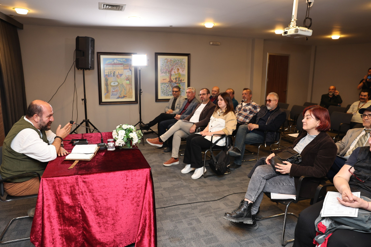 BURSA (İGFA) – Bursa Nilüfer Belediyesi Yazıevi Buluşmaları’nda, sanatseverleri Türk edebiyatının ve düşün dünyasının önemli isimleriyle bir araya getirmeye devam ediyor. Nilüfer Belediyesi’nin Misi Yazıevi’nde ağırladığı; Türkiye’nin yakın siyasi tarihini ele alan çalışmalarıyla tanınan Prof. Dr. Mete Kaan Kaynar, Nâzım Hikmet Kültürevi Balaban Salonu’nda “Cumhuriyet: Kimin, Neden?” konulu bir söyleşi gerçekleştirdi.