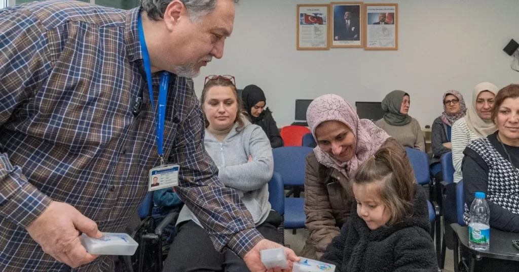 Bayraklı Gümüşpala Kurs Merkezi’nde dikiş kursuna giden kadınlar da ağız ve diş sağlığı eğitimi aldı. Özellikle çocukları için diş hekimi Koray Engin’den bilgi alan kadınlara, isteğe göre ön bakı hizmeti de sağlandı. Eğitimlere 3,5 yaşındaki Zehra Karaderi ile katılan anne Zerrin Karaderi, “Eğitimler çok güzeldi. Ben kızım için katıldım. Dişine çözüm bulmak istedim, sağ olsun hocamız yönlendirecek. Kızımın dişlerinin çoğu çürük” dedi. Neriman Ökten ise “Eğitimi çok beğendim. Doktor bey, çok güzel ve detaylı bir şekilde anlattı. Alanında uzman olduğu belli ve doğru noktalara dokundu. Burada olduğum için mutlu oldum. Kendimize nasıl bakacağımız konusunda yönlendirdi. Diş sağlığı hizmetine ulaşmak çok zor ve bu hizmeti burada almak cevher gibi oldu” diye konuştu.