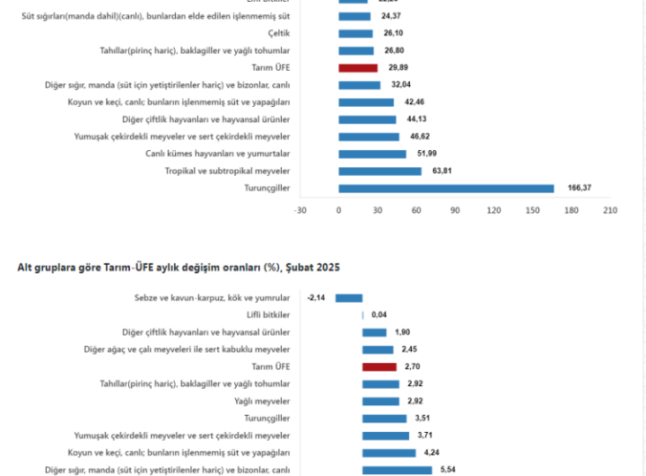 ANKARA (İGFA) – TÜİK, Şubat ayına ilişkin Tarım Ürünleri Üretici Fiyat Endeksi verilerini açıkladı. Tarım-ÜFE’de (2020=100), 2025...
