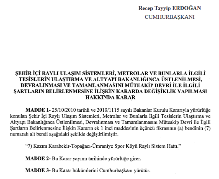 Bakan Uraloğlu, Altunizade-Çamlıca Camii-Bosna Bulvarı Metrosu’nu Bakanlık olarak hayata geçirdiklerini belirterek “Ancak gerek şehircilik gerekse değişen ihtiyaçlar noktasında Ümraniye Belediyemizden ve İstanbul Valiliği’mizden bu hattın Topağacı Mahallesi, Kazım Karabekir Mahallesi ve Ümraniye Spor Köyü’ne kadar uzatılmasıyla ilgili bir talep geldi. Büyükşehir ne işin içerisinde var ne talep noktasında var ne de bir tasarı da olsa ne bir düşünce de olsa bir projesi var… Bunların hiçbirisi yok. Bunun üzerine biz de buradaki vatandaşlarımızın ihtiyacını çözme noktasında bir proje çalışması başlatmıştık, o proje çalışmasını aşağı yukarı tekamül ettirdik. Yaklaşık 4,5 kilometrelik bir metro hattıdır. Bunun da Cumhurbaşkanımızdan yetkisini alarak Bakanlık olarak yapılmasıdır.” diye konuştu.