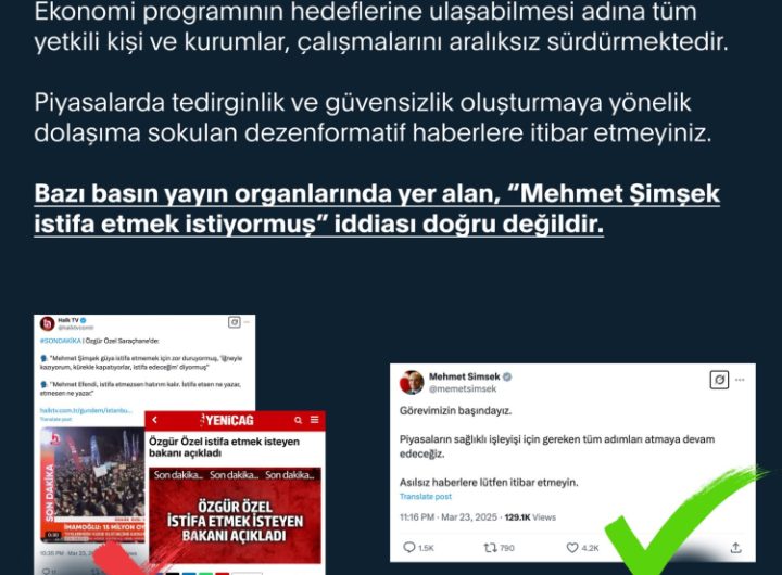 ANKARA (İGFA) – Hazine ve Maliye Bakanı Mehmet Şimşek, iddia edildiği gibi bir beyanının bulunmadığını açıkladı. İletişim...