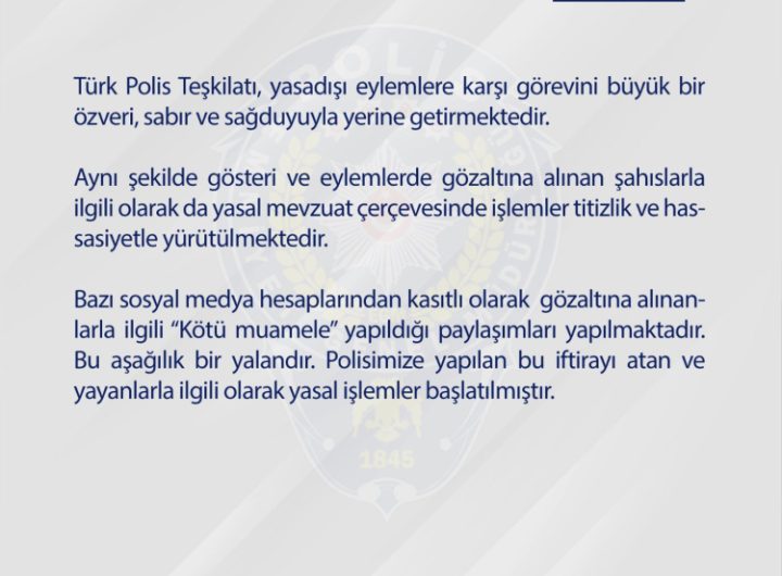 ANKARA (İGFA) – Emniyet Genel Müdürlüğü (EGM), İstanbul’da yaşanan yasadışı eylem ve gösterilere yönelik yapılan gözaltılarla ilgili...