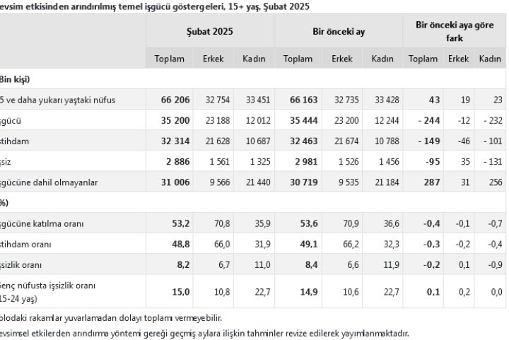 ANKARA (İGFA) – Türkiye İstatistik Kurumu, Şubat ayına ilşikin İşgücü İstatistikleri’ni yayımladı. Hanehalkı İşgücü Araştırması sonuçlarına göre;...