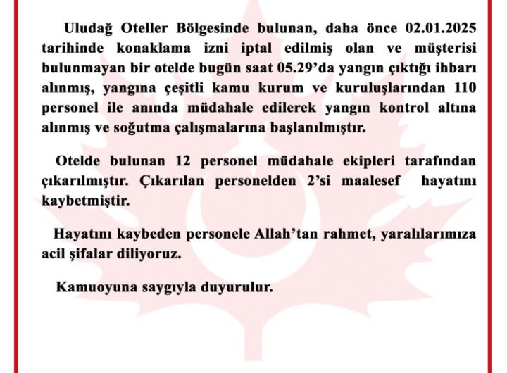 BURSA (İGFA) – Bursa’da Uludağ Oteller Bölgesi’nde bulunan bir otelin kafeterya bölümünde, sabah saatlerinde yangın çıktı. Bursa...