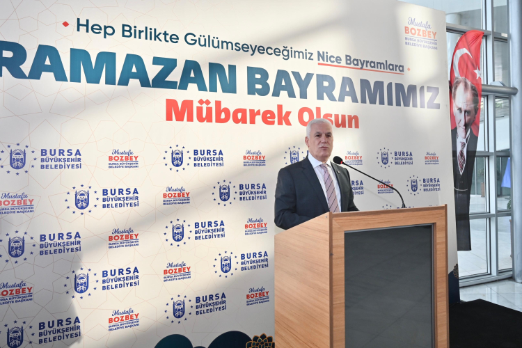 Büyükşehir Belediye Binası tören alanındaki programda konuşan Başkan Mustafa Bozbey, herkesin sağlıklı, mutlu ve güzel bir bayram geçirmesini diledi. Bugüne kadar yapılan hizmetlere katkı sunan tüm çalışanlara teşekkür eden Başkan Bozbey, “Biz bir aileyiz. Yönetiminden idari mekanizmasına kadar bütün arkadaşlarımız bu kurumun çalışanı ve temsilcisidir. Birbirimizle proje paylaşarak, ortak akılla o projenin doğruluğunu sorgulayarak ve uygulayarak bu kente hizmet edeceğiz. Her bir çalışma arkadaşım benim için kıymetlidir. Nice bayramlarda hep beraber güzellikler içerisinde buluşmayı diliyorum. Ramazan Bayramımız mübarek olsun” dedi.