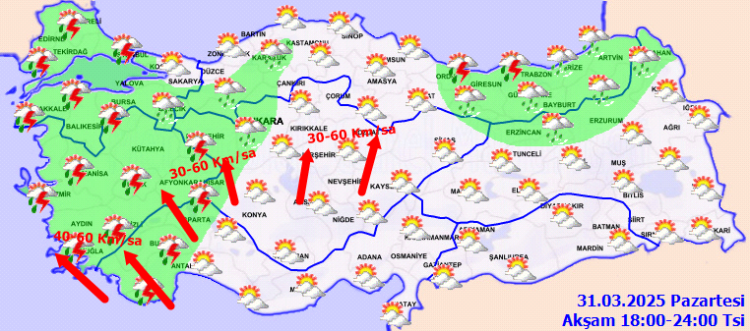 BURSA (İGFA) – Meteoroloji Genel Müdürlüğü, Mart ayının son günü, Ramazan Bayramı’nın ikinci günü olan 31 Mart Pazartesi gününe ilişkin günlük hava tahmin raporunu yayımladı.