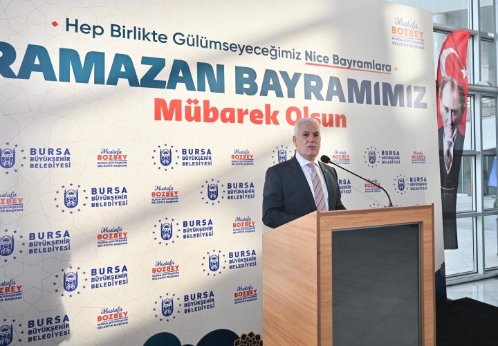 BURSA (İGFA) – Bursa Büyükşehir Belediye Başkanı Mustafa Bozbey, Ramazan Bayramı öncesinde Büyükşehir Belediyesi çalışanlarıyla bayramlaşma töreninde buluştu....